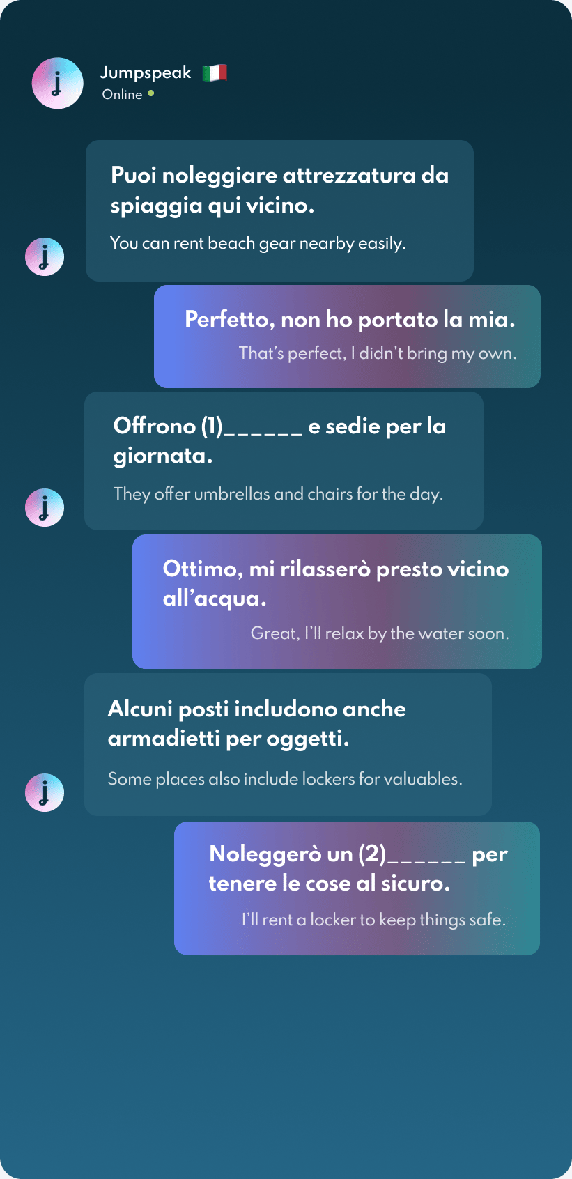 Jumpspeak is an immersion-focused language app that gets you speaking a new language on day one using real-life conversations. Learn Spanish, French, Italian, German, and more languages (20 available!) using AI Immersion. You can practice speaking without any fear of embarrassment, as if you have a personal AI tutor in your pocket.