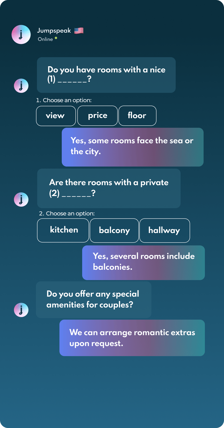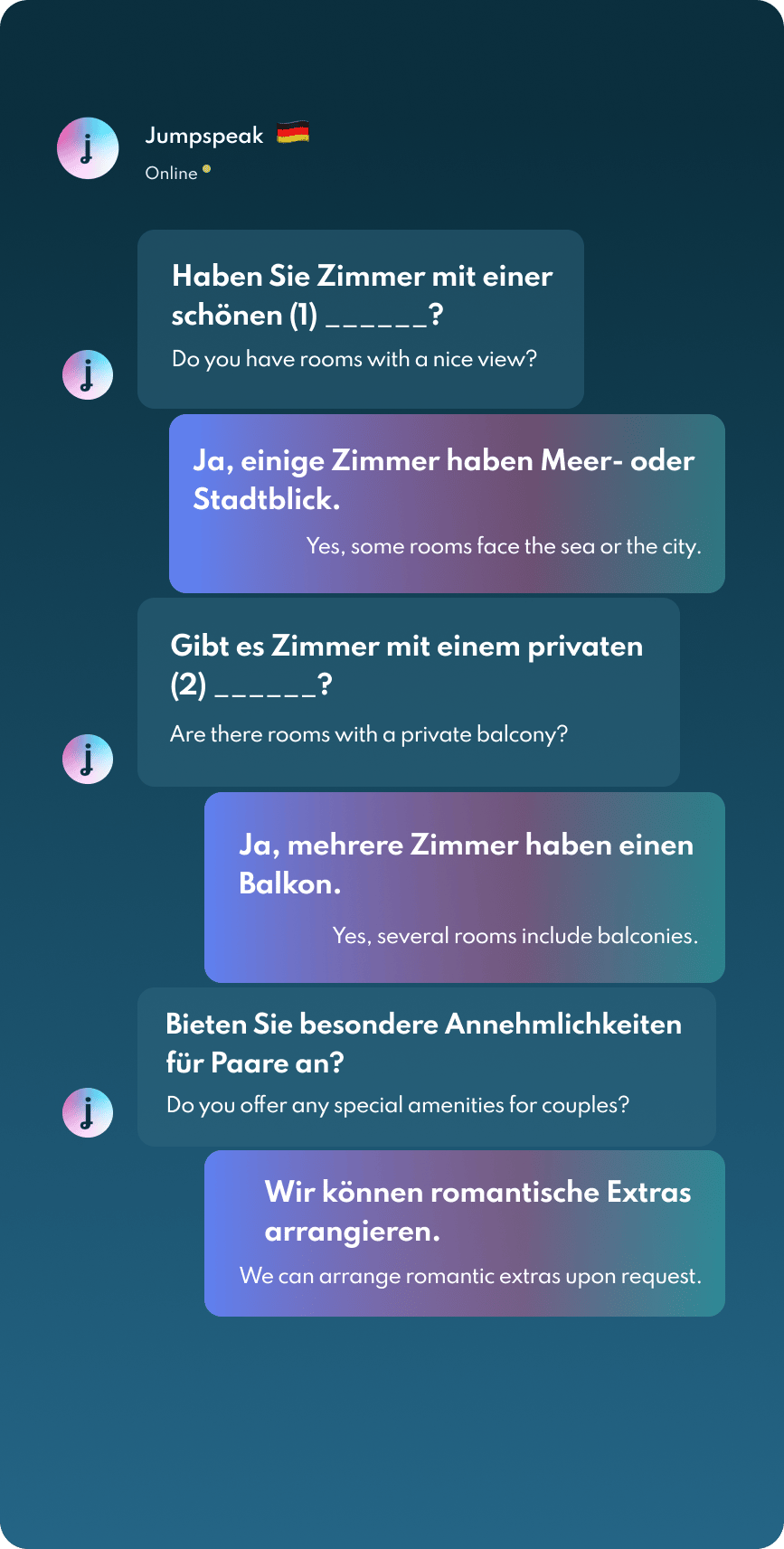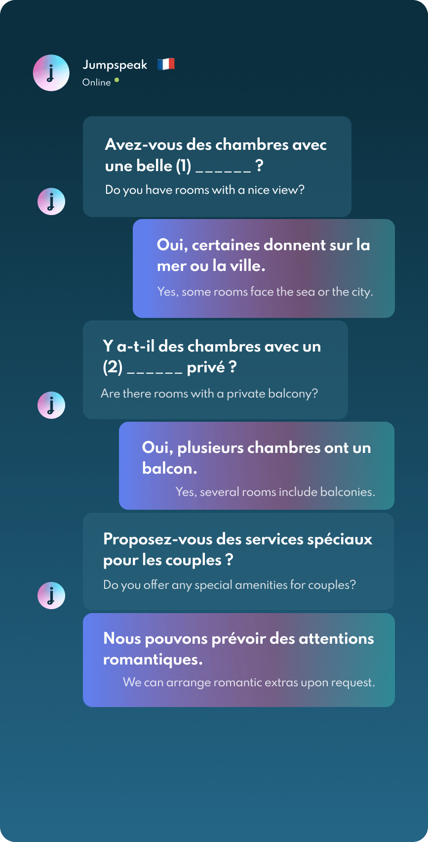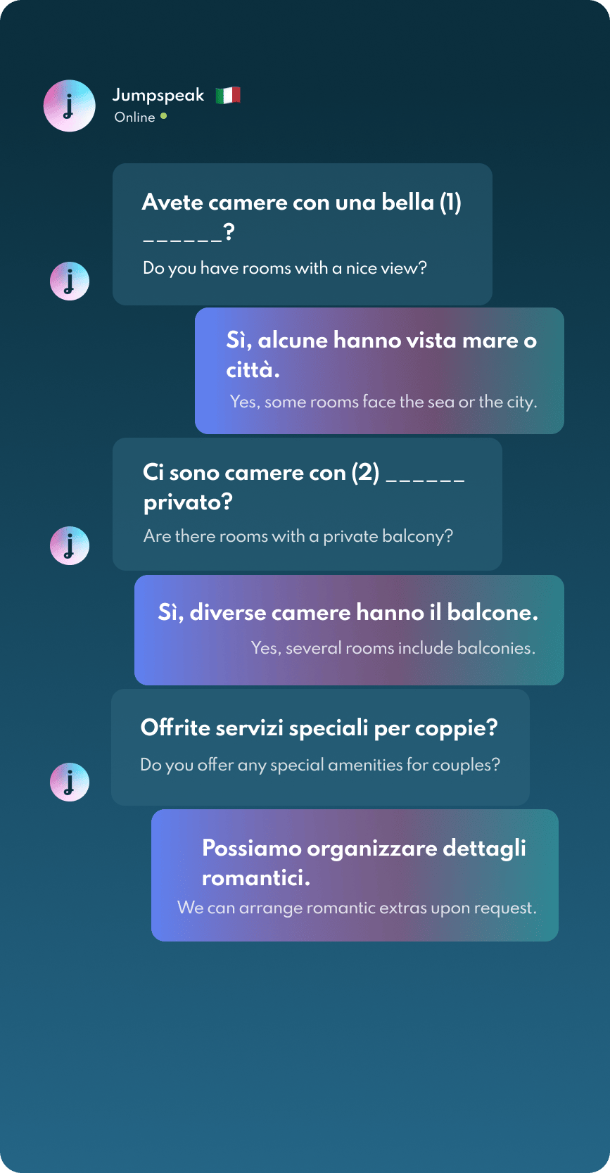 Jumpspeak is an immersion-focused language app that gets you speaking a new language on day one using real-life conversations. Learn Spanish, French, Italian, German, and more languages (20 available!) using AI Immersion. You can practice speaking without any fear of embarrassment, as if you have a personal AI tutor in your pocket.