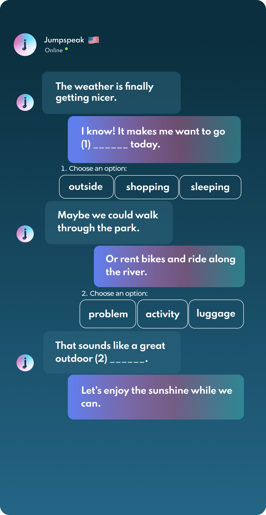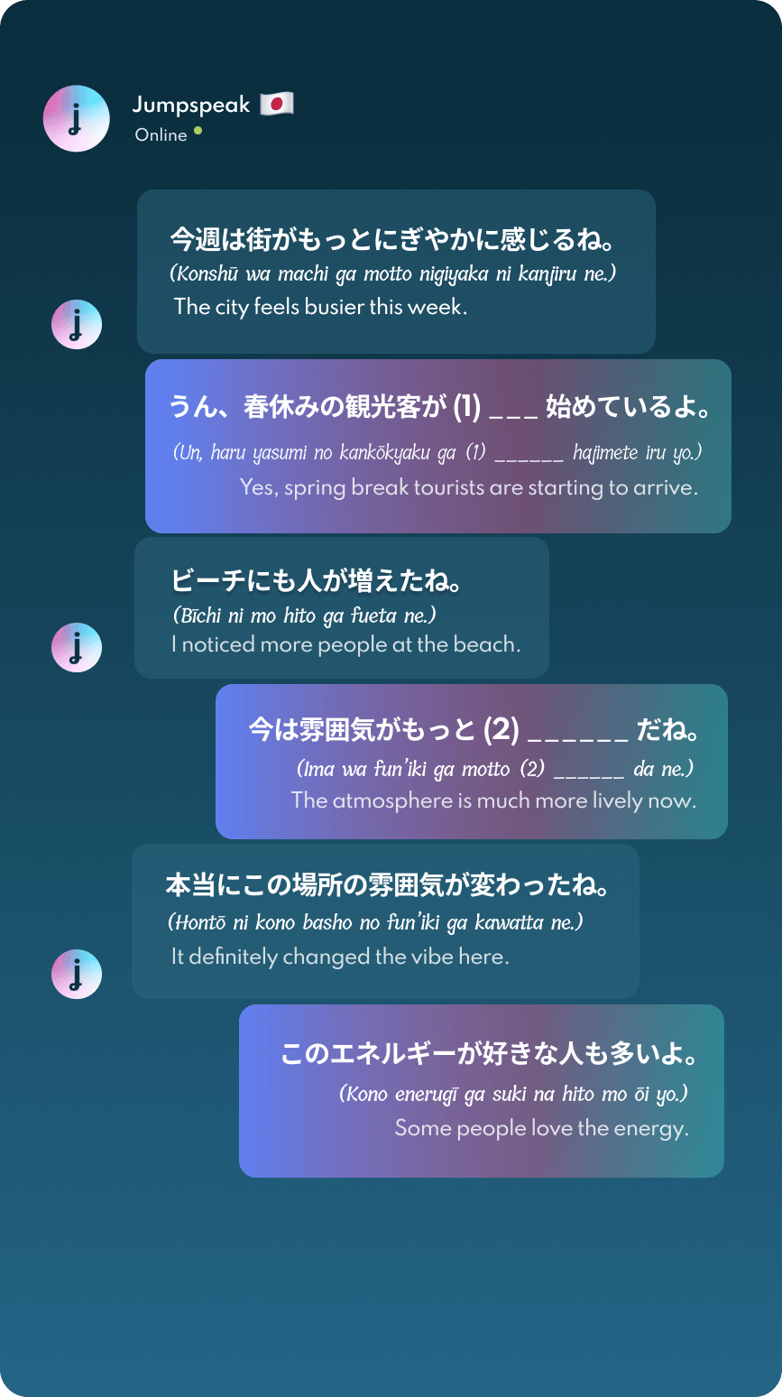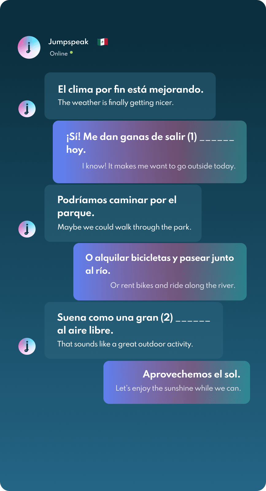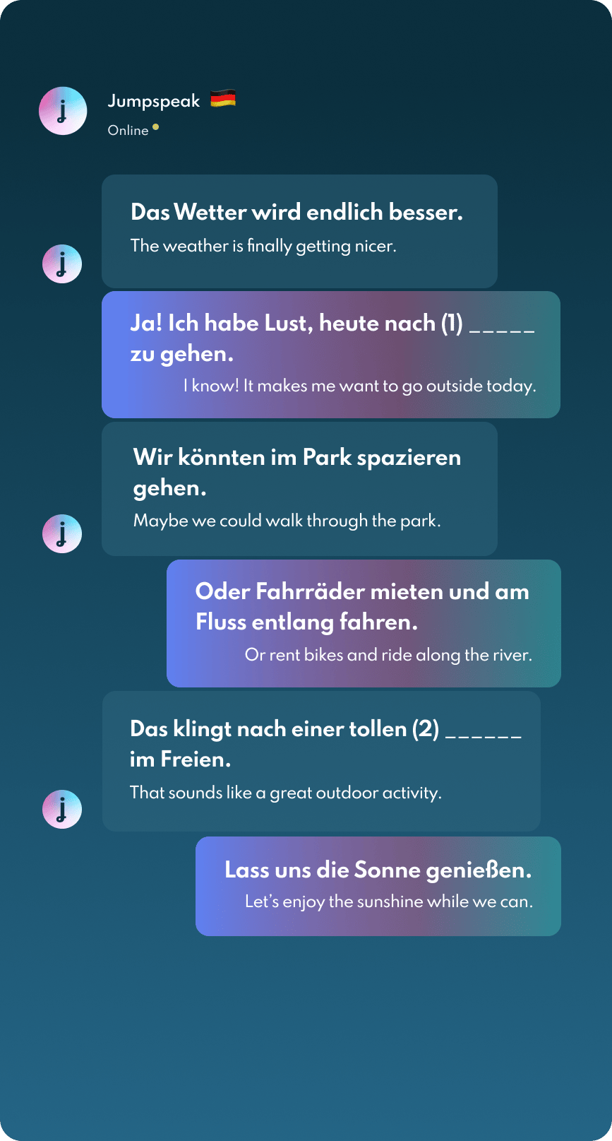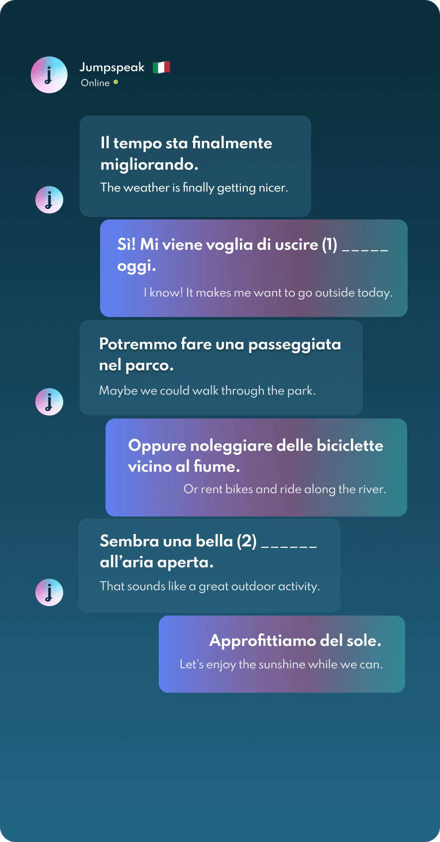 Jumpspeak is an immersion-focused language app that gets you speaking a new language on day one using real-life conversations. Learn Spanish, French, Italian, German, and more languages (20 available!) using AI Immersion. You can practice speaking without any fear of embarrassment, as if you have a personal AI tutor in your pocket.