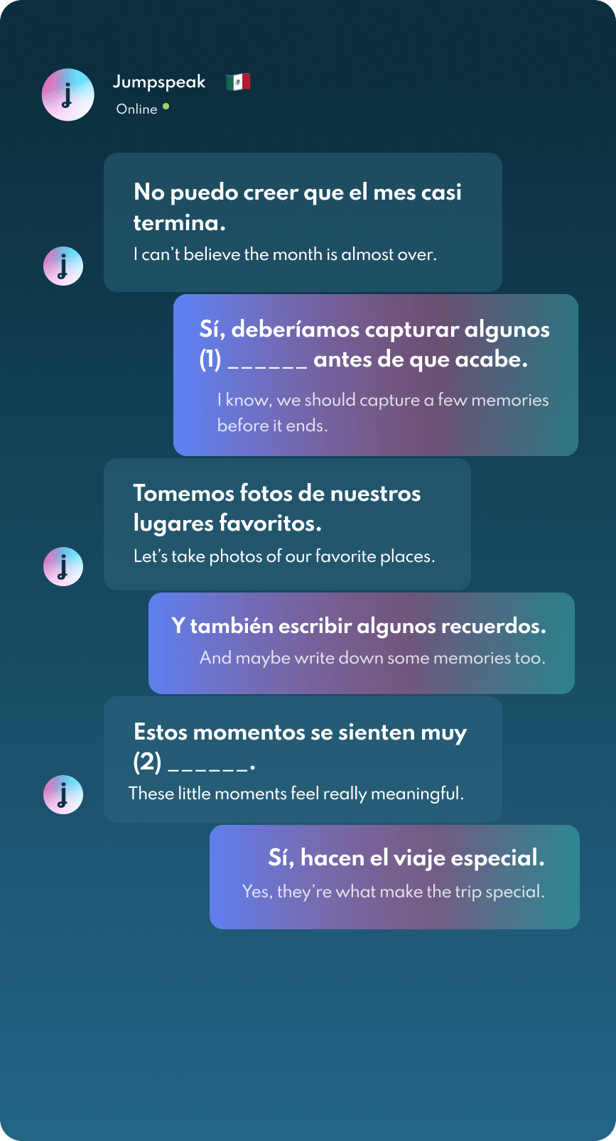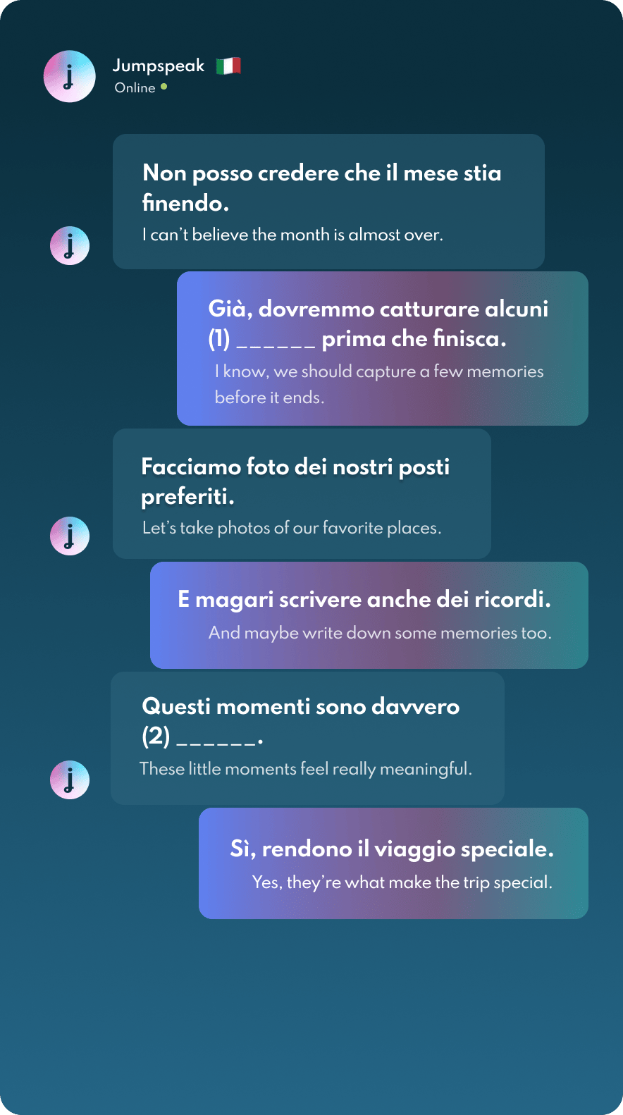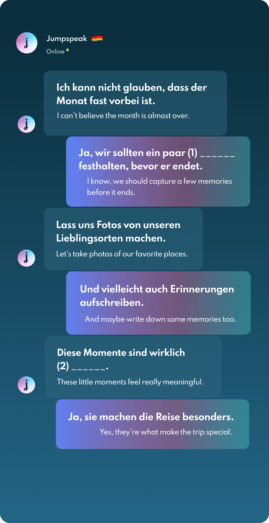 Jumpspeak is an immersion-focused language app that gets you speaking a new language on day one using real-life conversations. Learn Spanish, French, Italian, German, and more languages (20 available!) using AI Immersion. You can practice speaking without any fear of embarrassment, as if you have a personal AI tutor in your pocket.