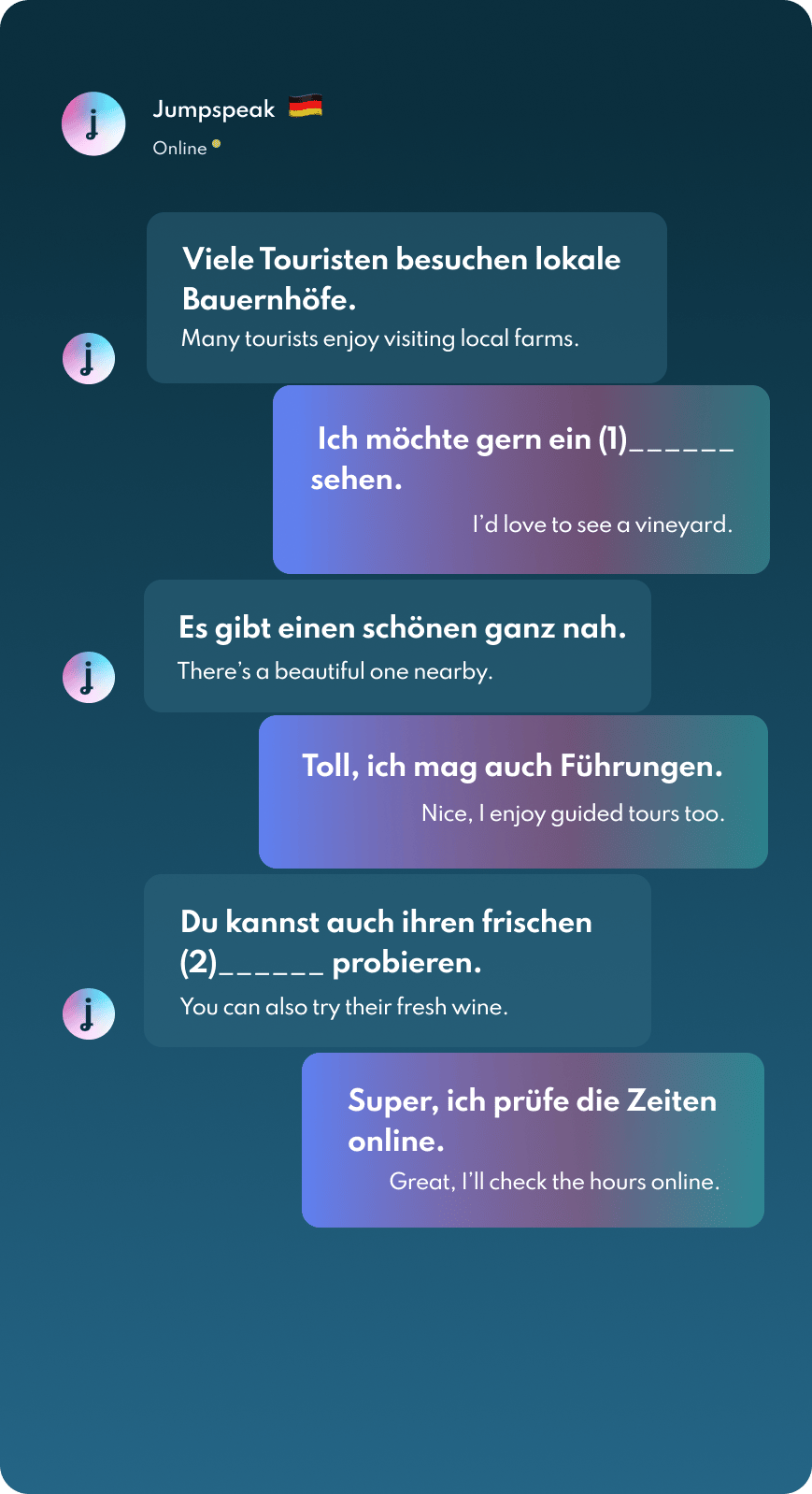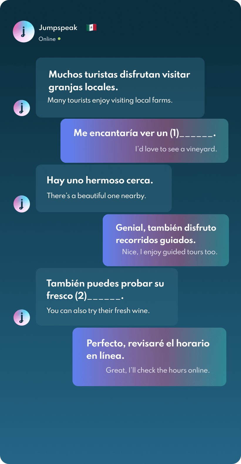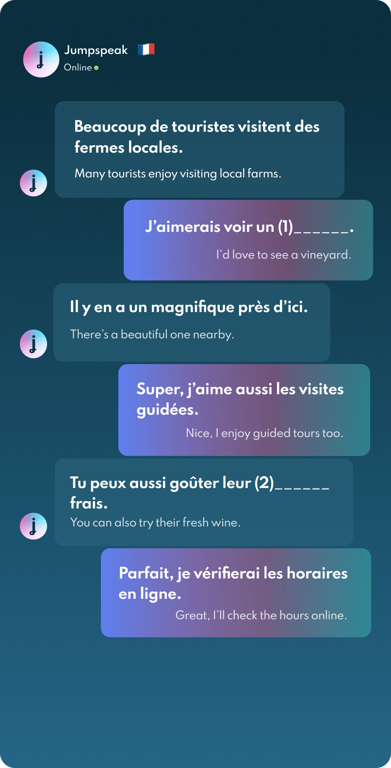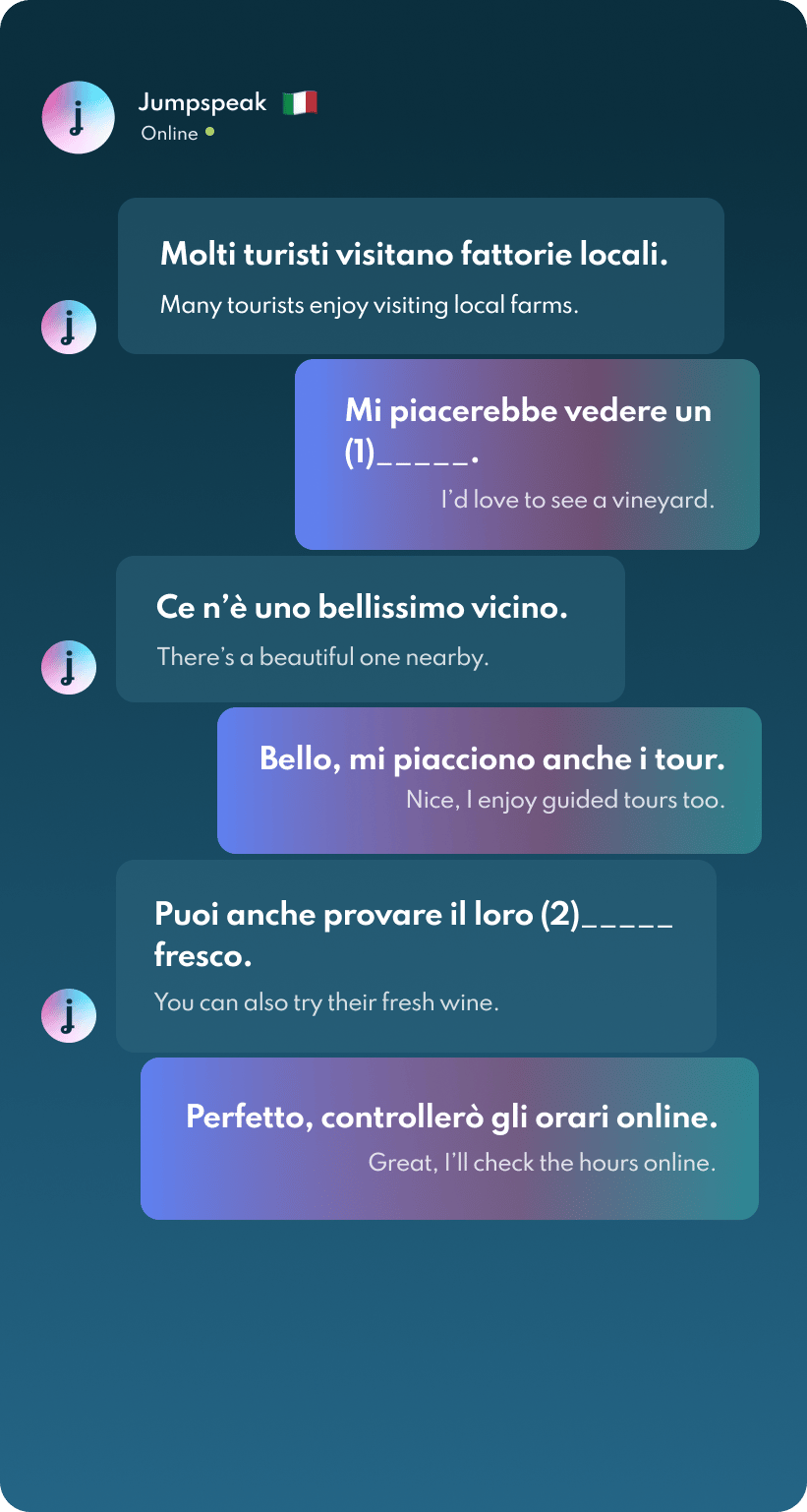 Jumpspeak is an immersion-focused language app that gets you speaking a new language on day one using real-life conversations. Learn Spanish, French, Italian, German, and more languages (20 available!) using AI Immersion. You can practice speaking without any fear of embarrassment, as if you have a personal AI tutor in your pocket.