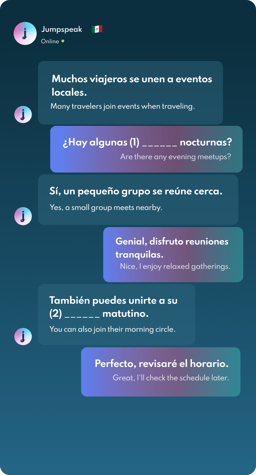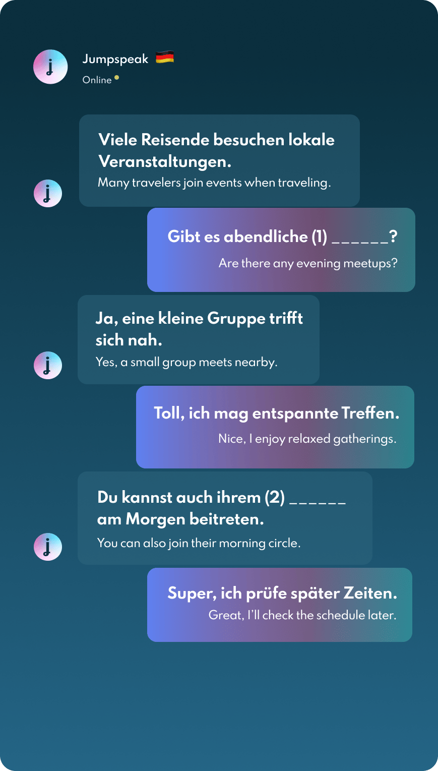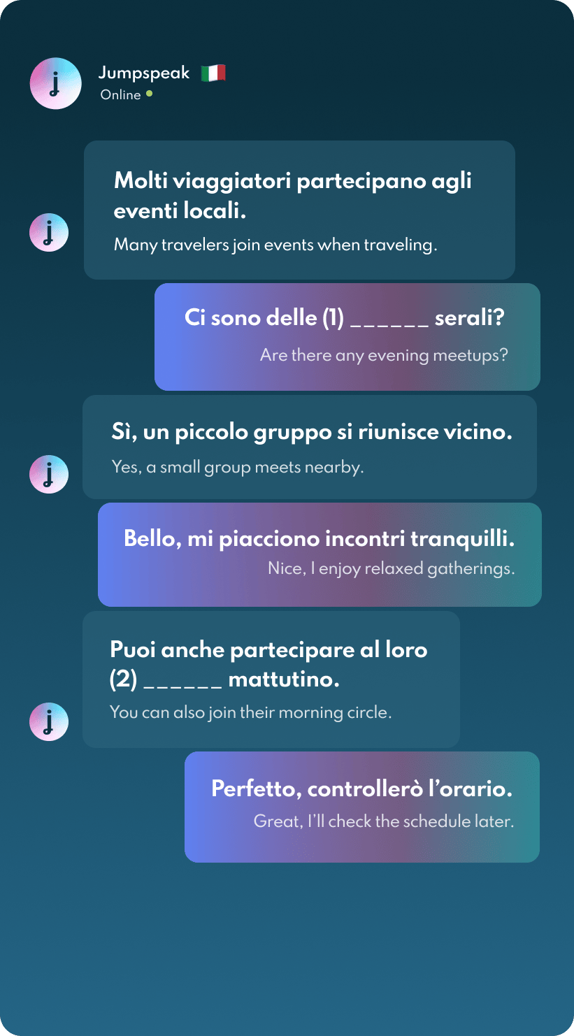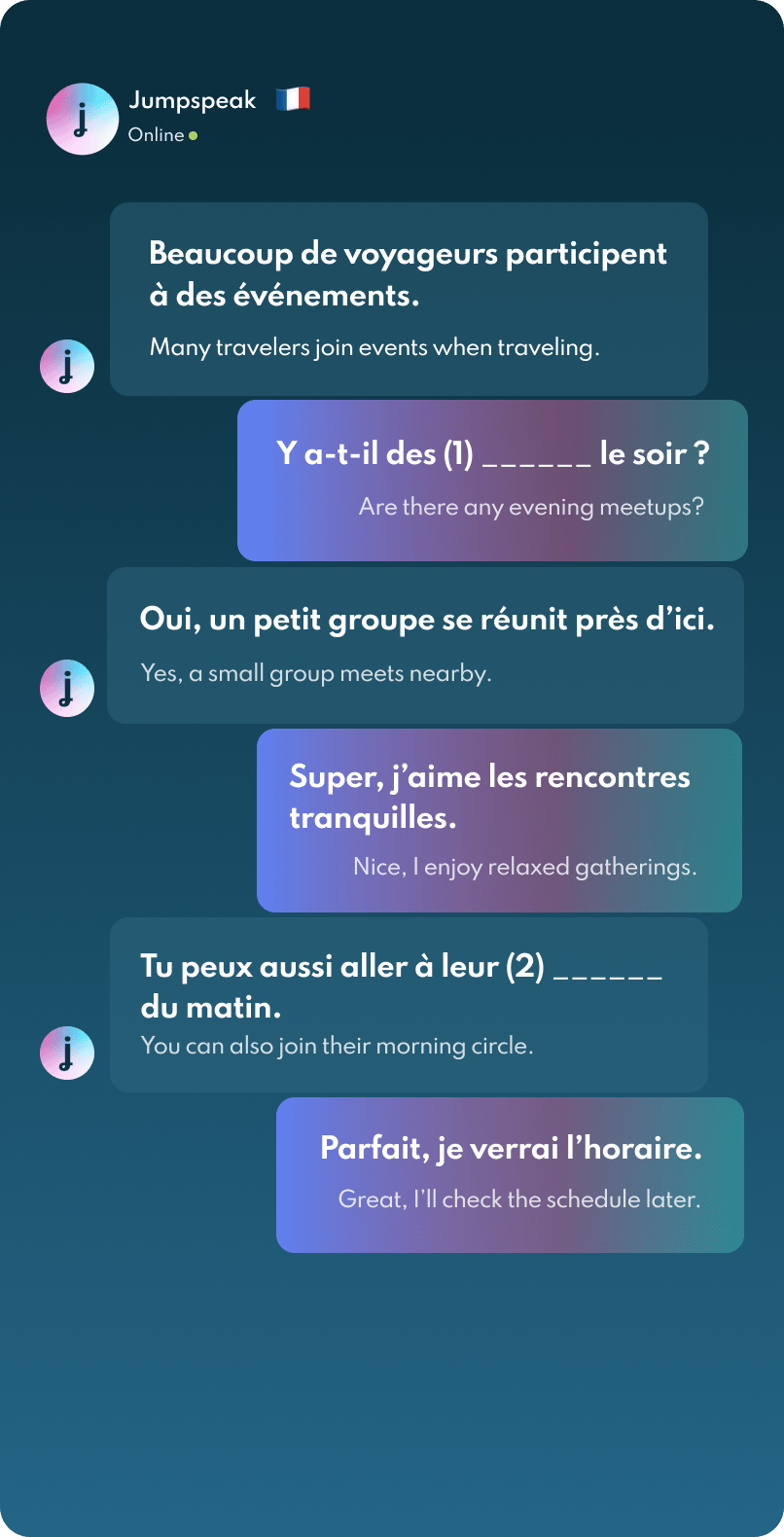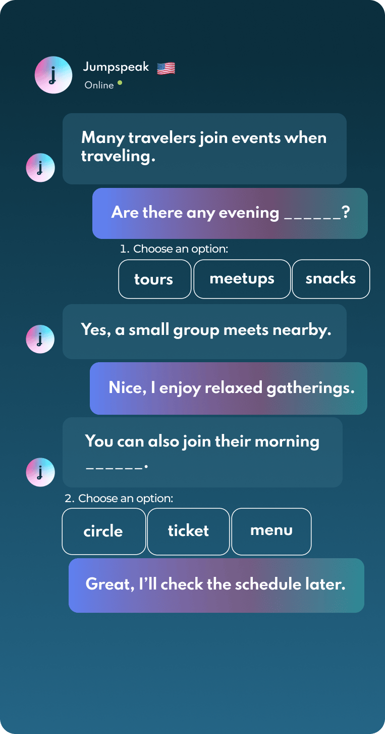 Jumpspeak is an immersion-focused language app that gets you speaking a new language on day one using real-life conversations. Learn Spanish, French, Italian, German, and more languages (20 available!) using AI Immersion. You can practice speaking without any fear of embarrassment, as if you have a personal AI tutor in your pocket.